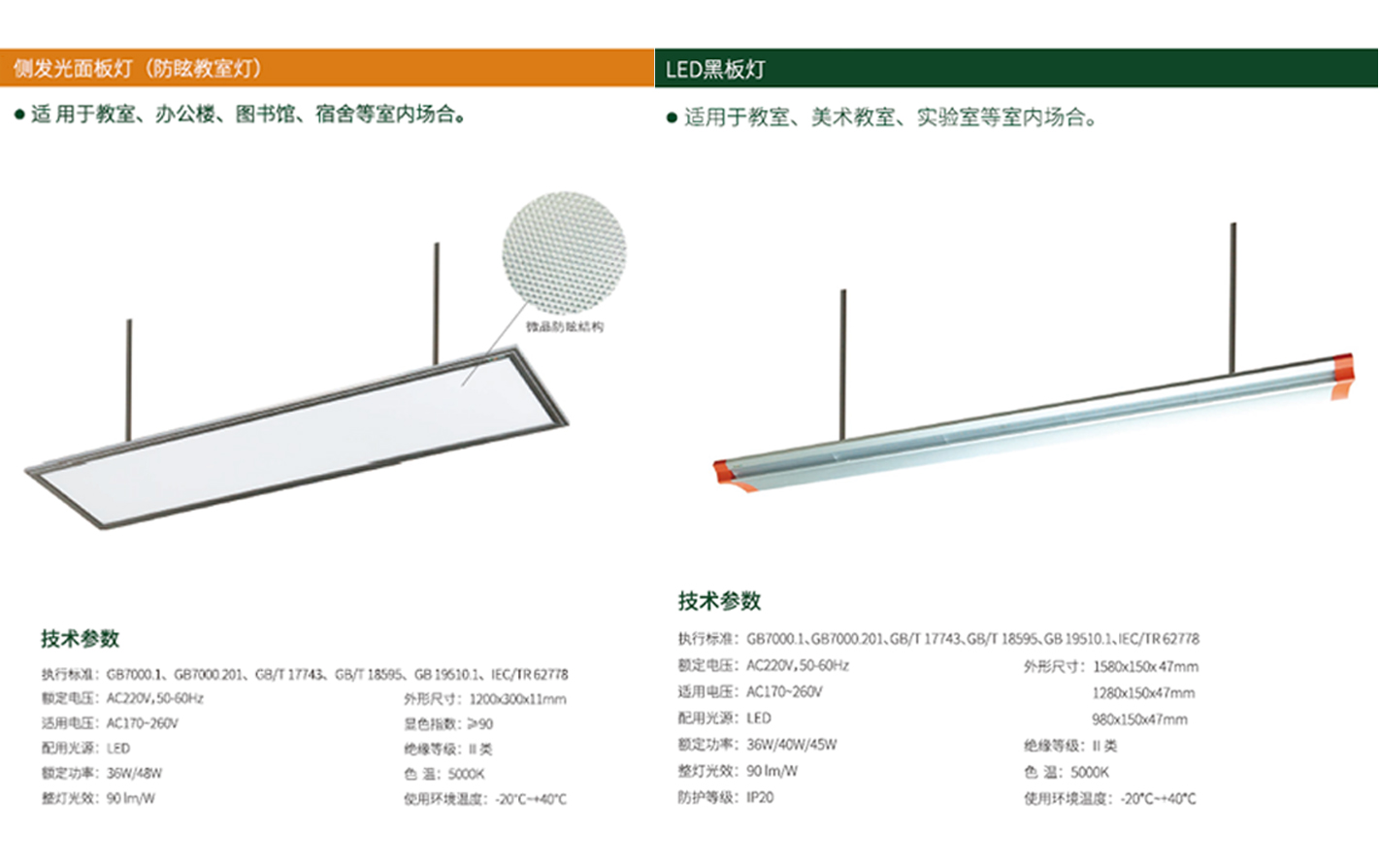 教室照明使用的燈具肯定是要選具有良好的護眼功能的燈具,給教室提供健康光環(huán)境,具有照度優(yōu)、無眩光、無光頻閃危害、顯色指數高、色溫適中、無藍色危害等優(yōu)點,做到真正保護學生視力。